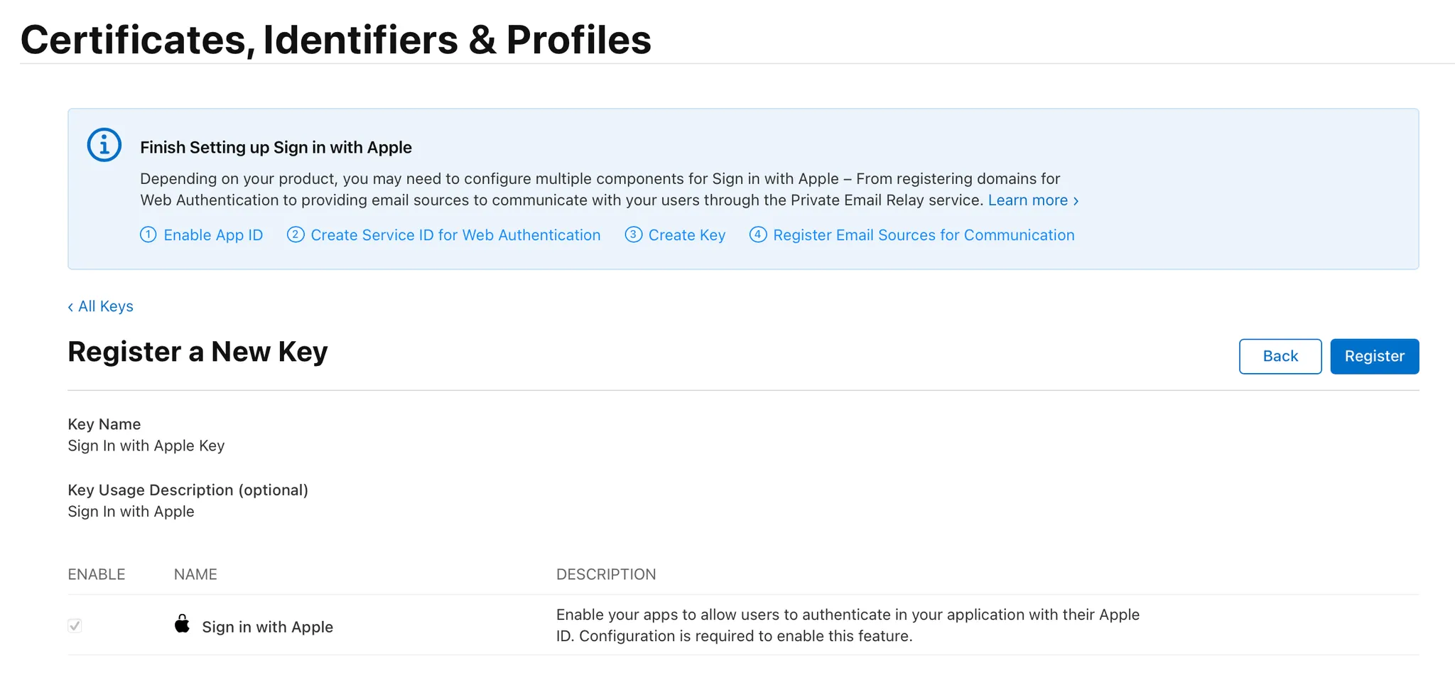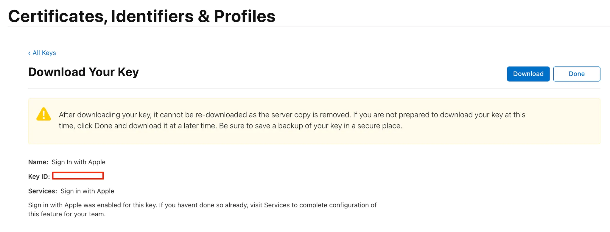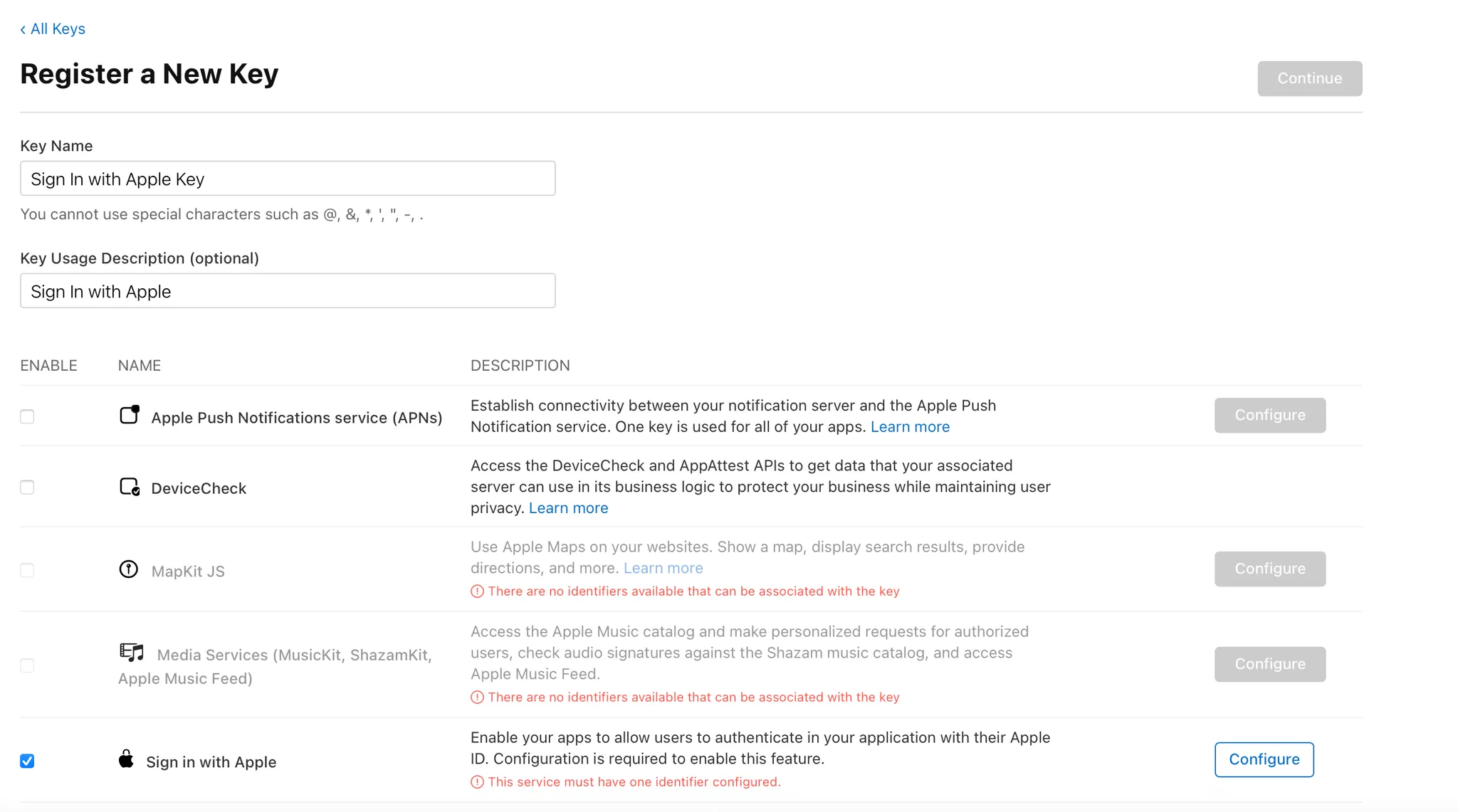 Create a Sign in with Apple private key