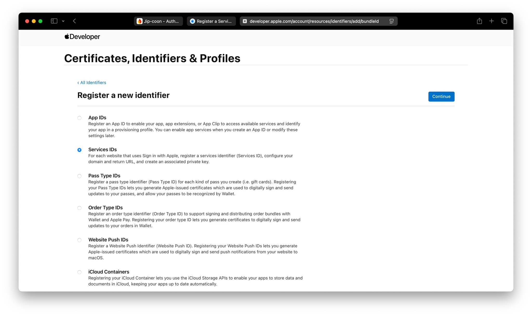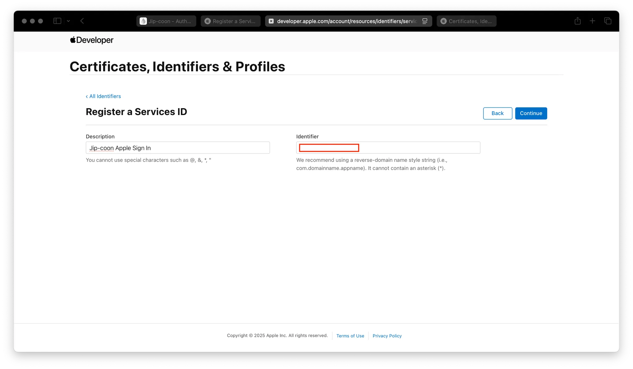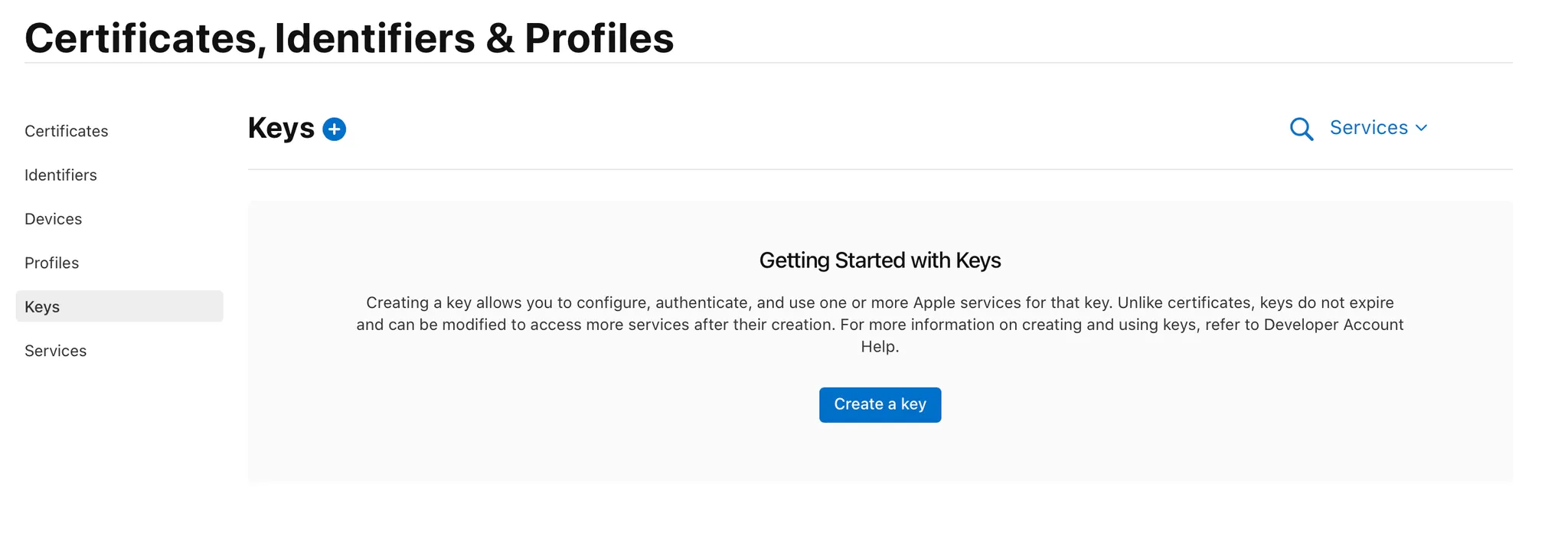 Create a Sign in with Apple private key