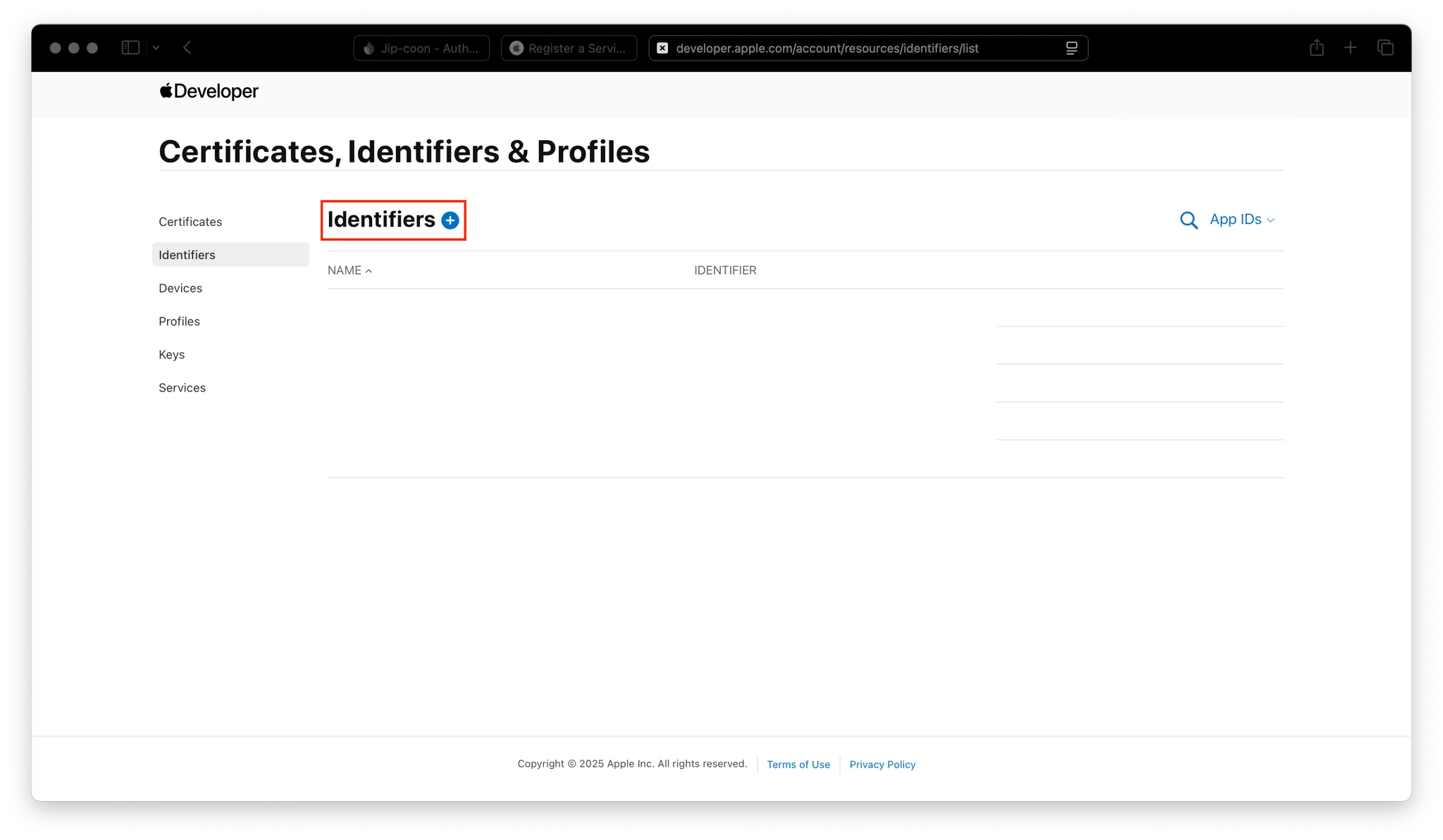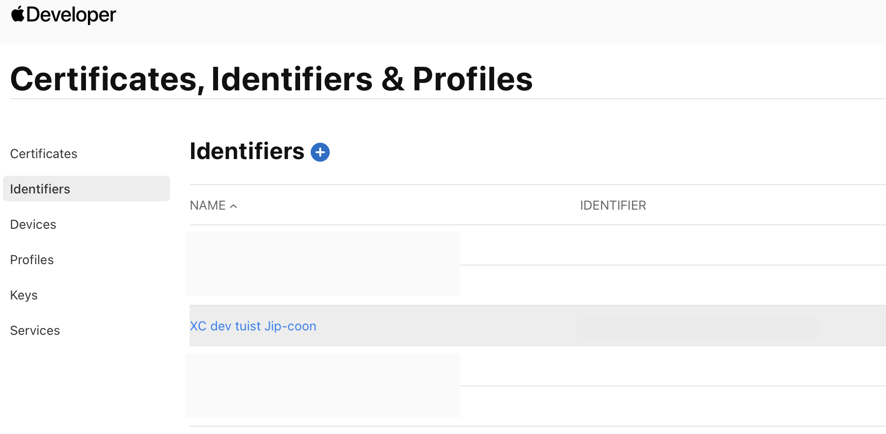 Xcode에서 Team을 None으로 두면 안 되고 개발자 계정으로 선택해주면 Apple Developer 웹의 Identifiers에서 정상적으로 등록된 것을 볼 수 있다.