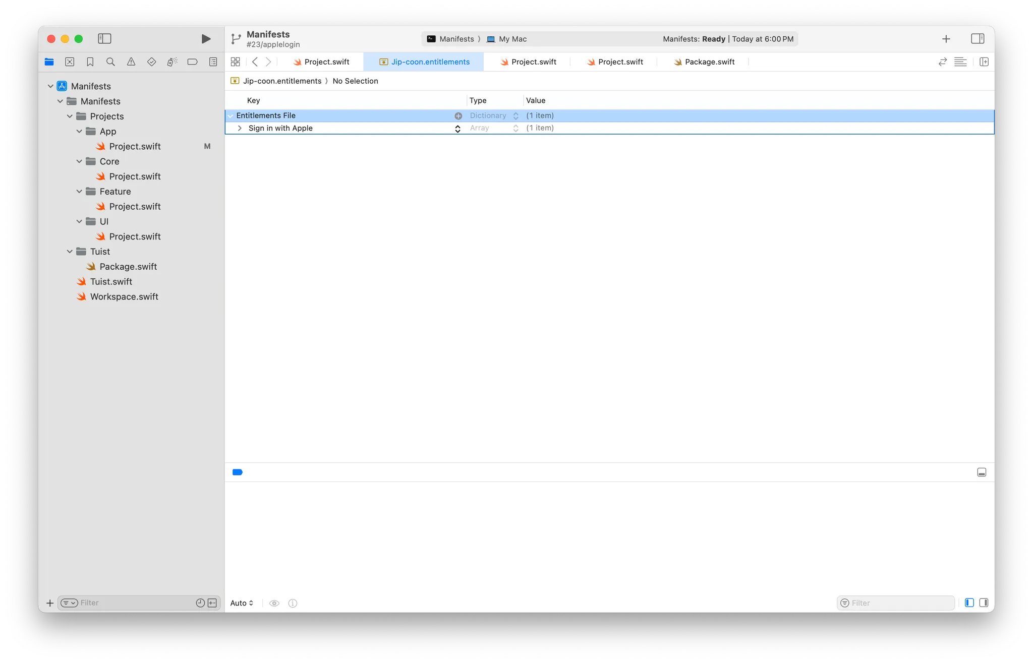 그럼 어떻게 하냐! Tuist Manifest에서 entitlements 파일을 설정해주면 된다.