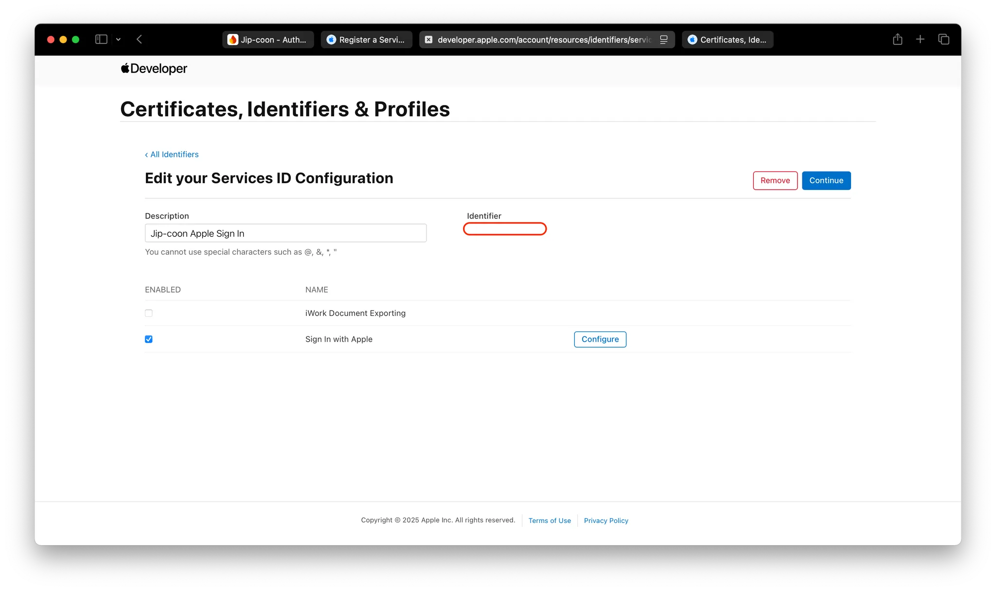 Sign In with Apple 클릭 - Configure