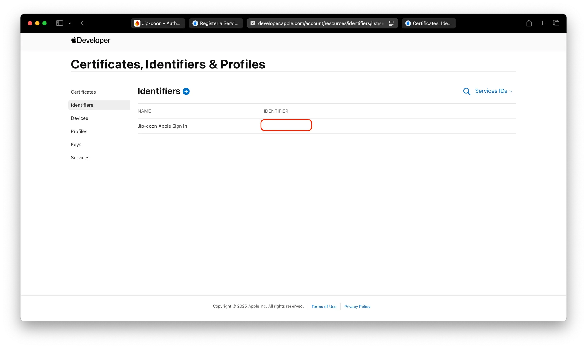 다른 방법으로도 확인 가능 하다. Identifier에서 아까 만든 식별자를 보면 팀 ID가 적혀있다.