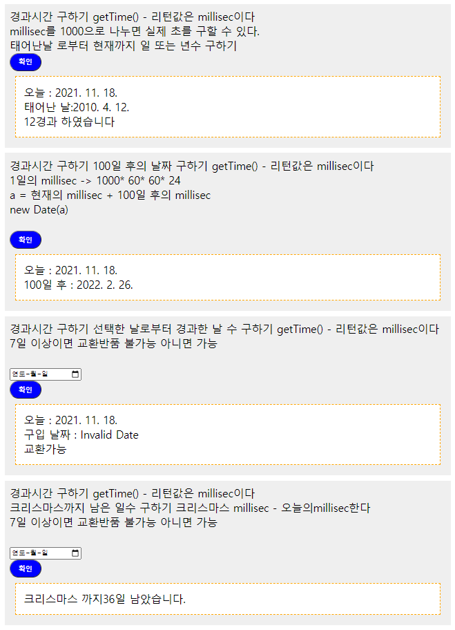 str += "100일 후 : " + after100.toLocaleDateString() + "<br>";