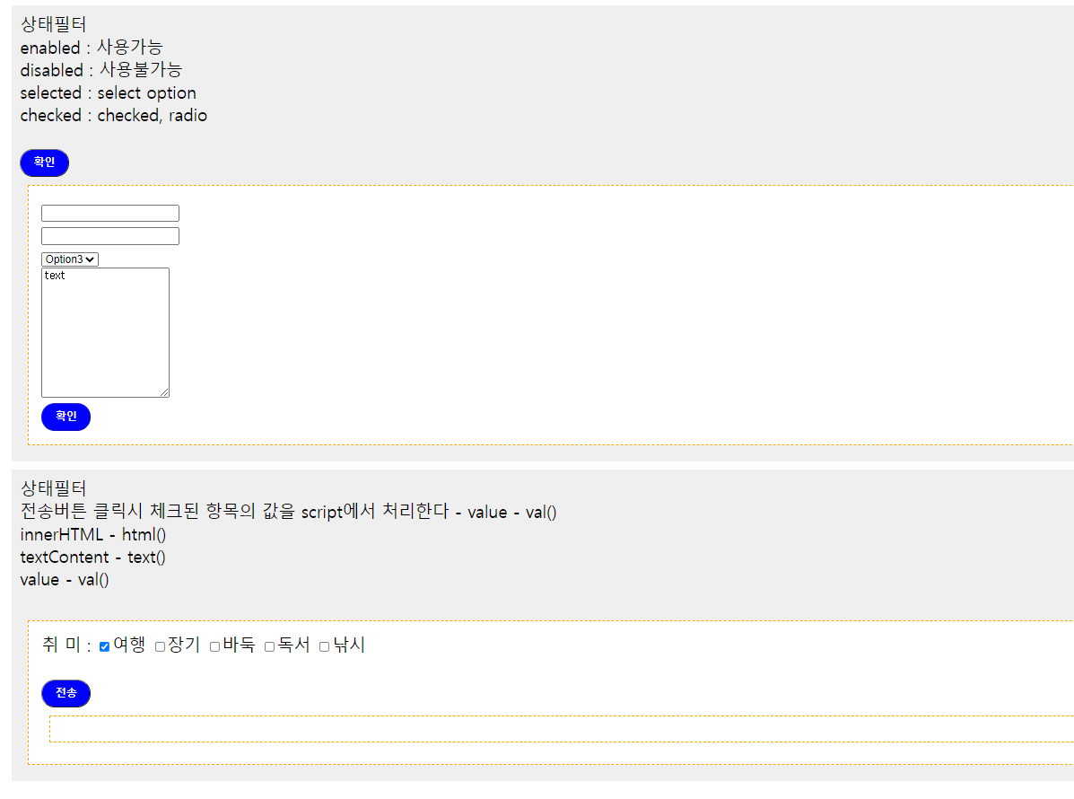 전송버튼 클릭시 체크된 항목의 값을 script에서 처리한다 - value - val()<br>
