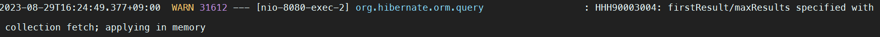 [WARN Log] HHH90003004: firstResult/maxResults specified with collection fetch; applying in memory 발생