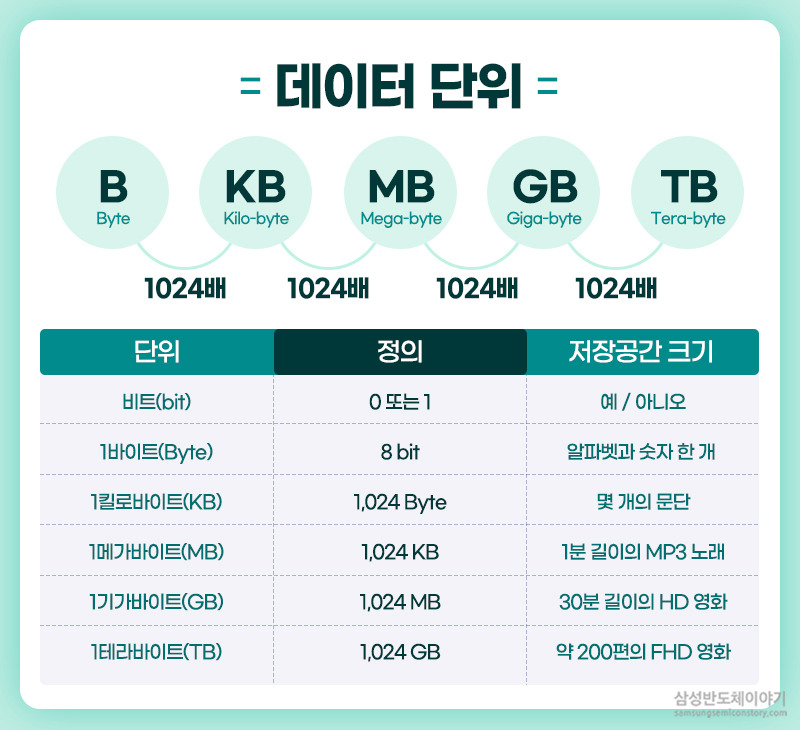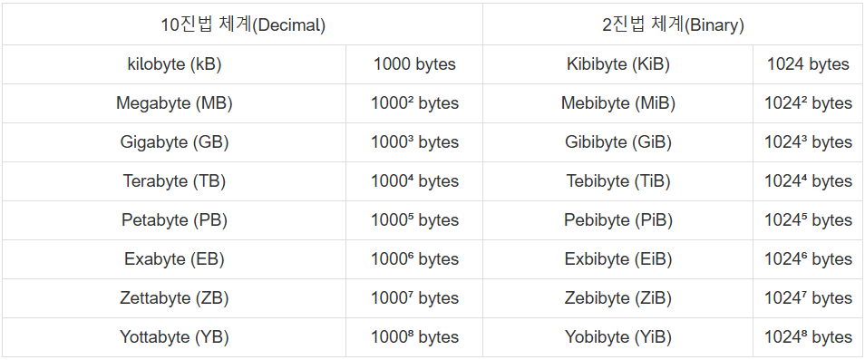 즉, KB<MB<GB<TB는 1024배씩 증가!