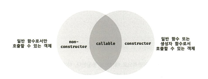 [[Call]]을 갖는 함수 객체를 callable이라 한다[[Construct]]를 갖는 함수 객체를 constructor, [[Construct]]를 갖지 않는 함수 객체를 non-constructor 라고 한다