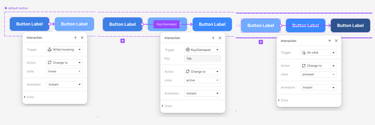 인터렉션을 추가해 Button을 눌렀을 때,마우스 오버,키보드 탭을 눌렀을 때 상태를 변경해준다.