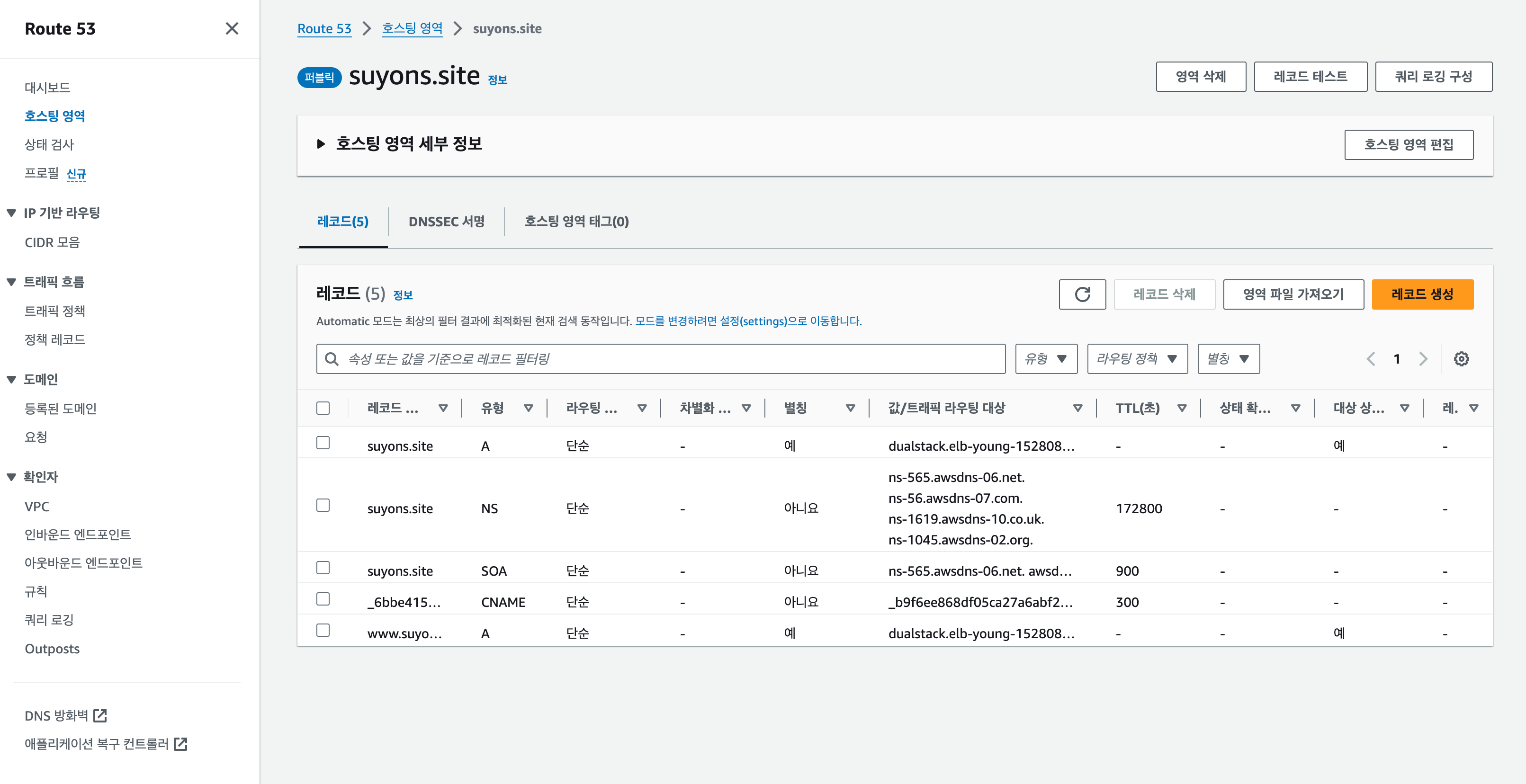 다음의 블로그 글에 가비아 도메인 구입부터 Route 53 연결까지 자세히 설명되어 있습니다.