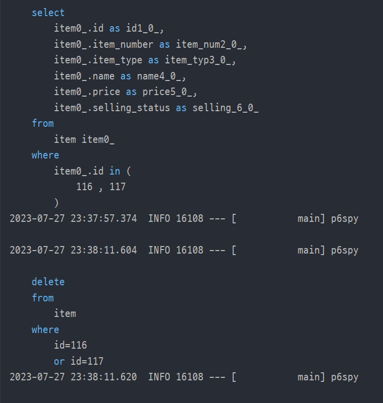위와 같이 @Query를 통해 직접 쿼리를 작성하면 or 대신 in 절을 사용하여 delete 쿼리를 한번 날릴 수 있었다.