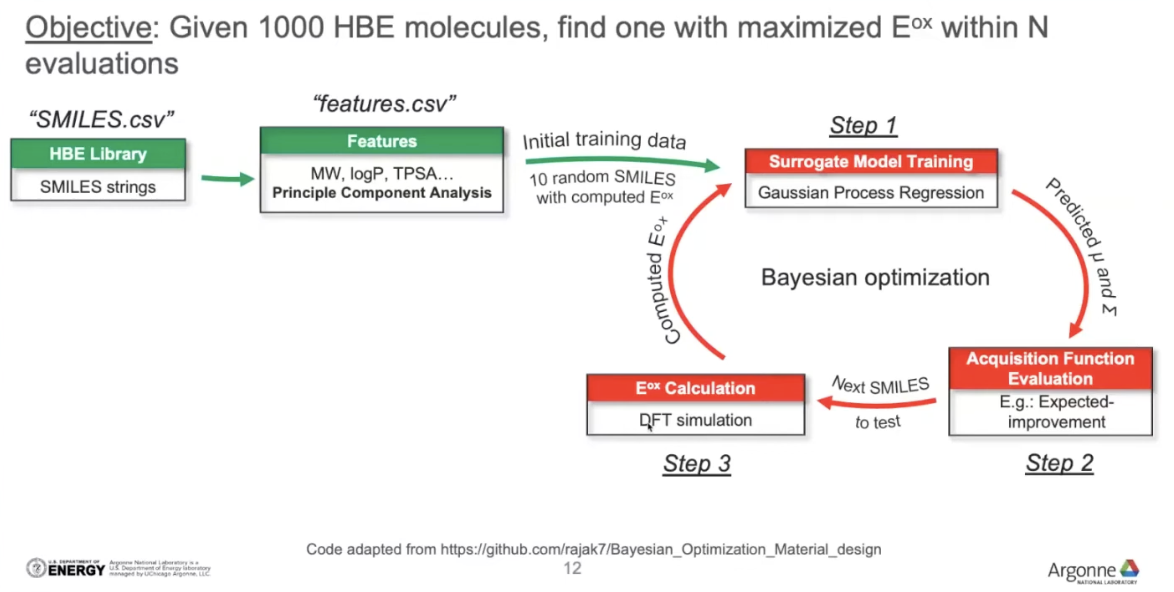 (4) [Step 2] Acquisition Function Evaluation: determine which molecules should be evalated next(molecule that has chance to have maximum oxidation potential)
