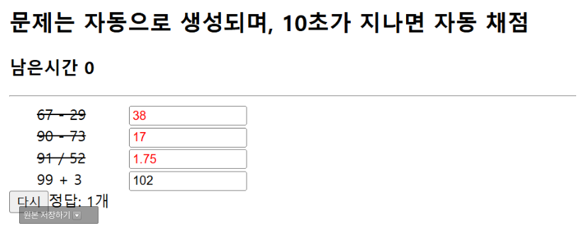 <h1 id="head">문제는 자동으로 생성되며, 10초가 지나면 자동 채점</h1>