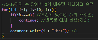 반복문에서 현재 반복만 건너뛰고 다음 반복으로 넘어간다.