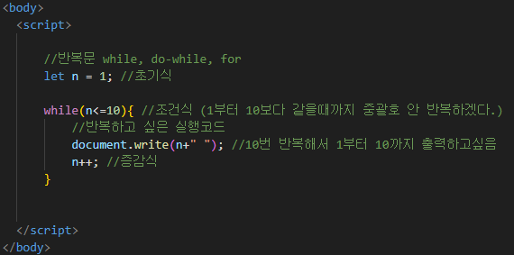 조건식이 참(true)인 동안 반복해서 실행되는 반복문이다.