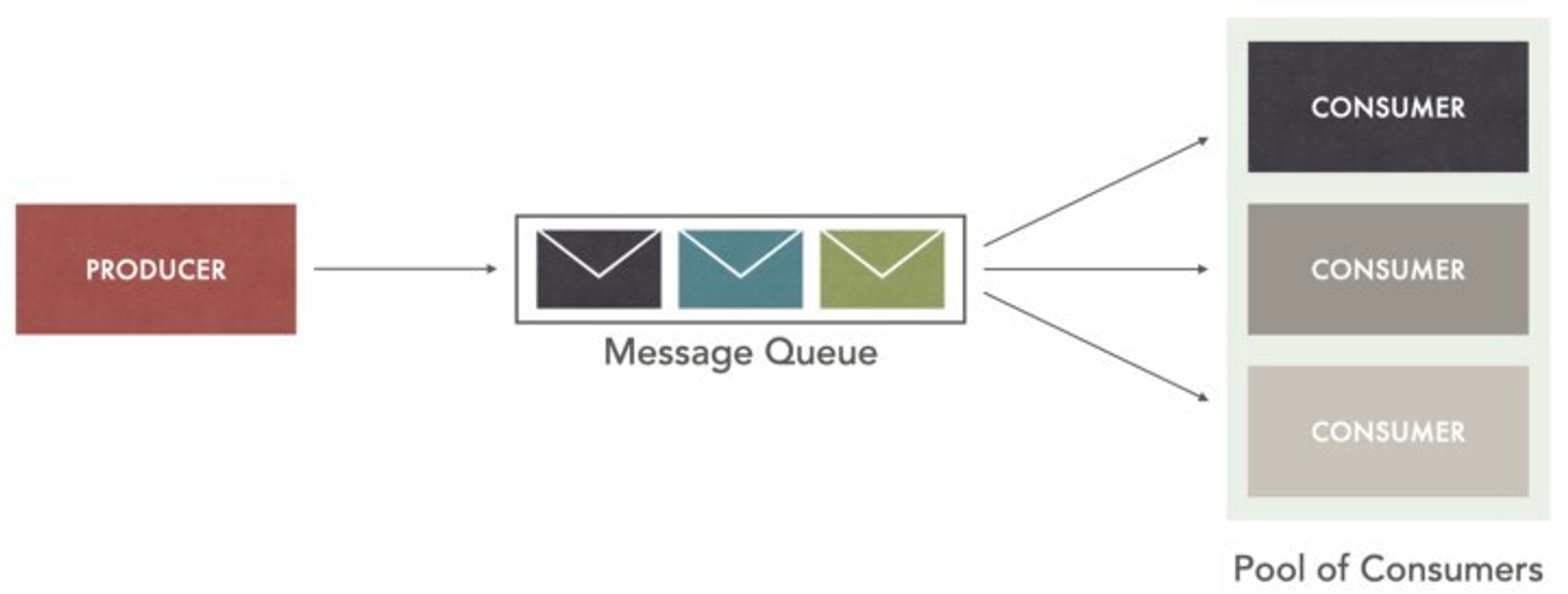 - Producer가 다수의 Cosumer에게 처리되는 많은 양의 Message를 Queue에 보내게 된다고 해도 Queue의 길이에 따라서 Message를 처리하는 Consumer를 추가해서 Scale Out을 통해 처리량을 올릴 수 있다.