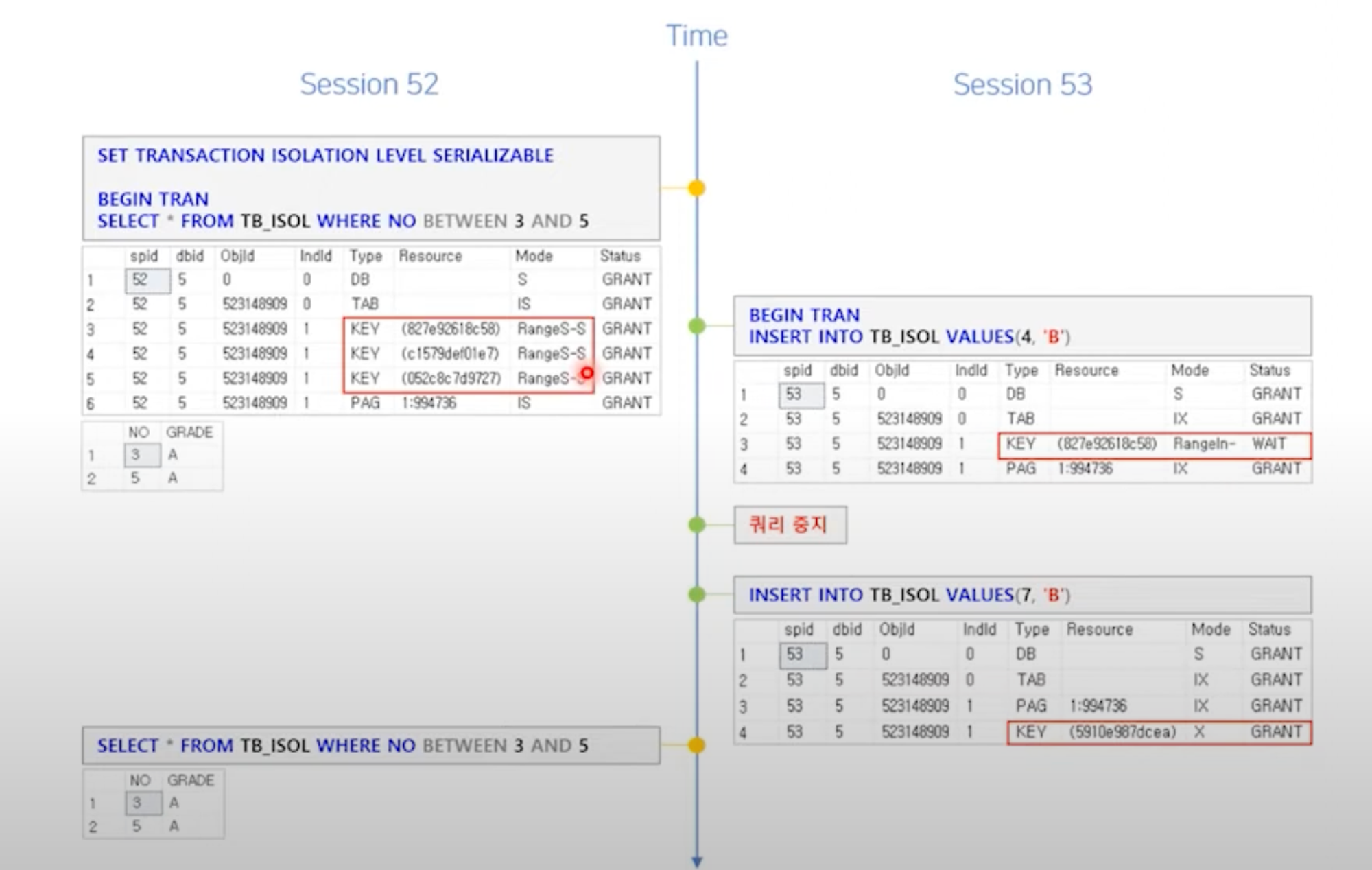 - 데이터 조회 시 키 단위로 공유 잠금을 하지 않고 키 범위로 공유 잠금을 한다.