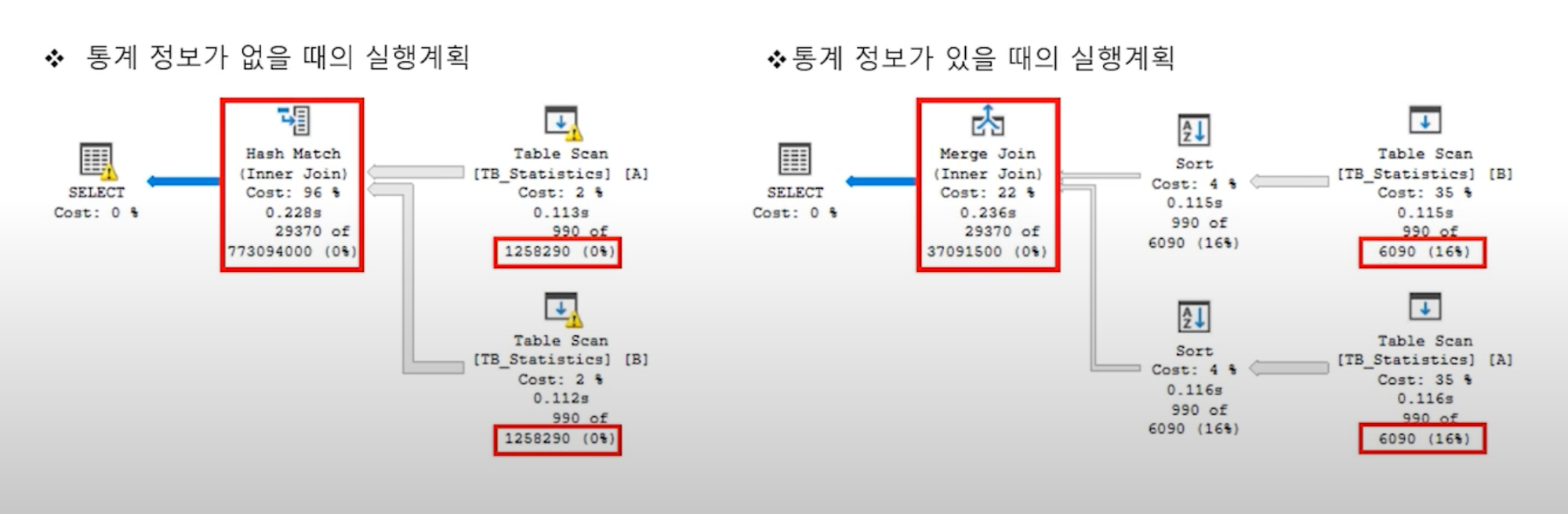 - 테이블의 데이터 분포를 기반으로 계산된 정보