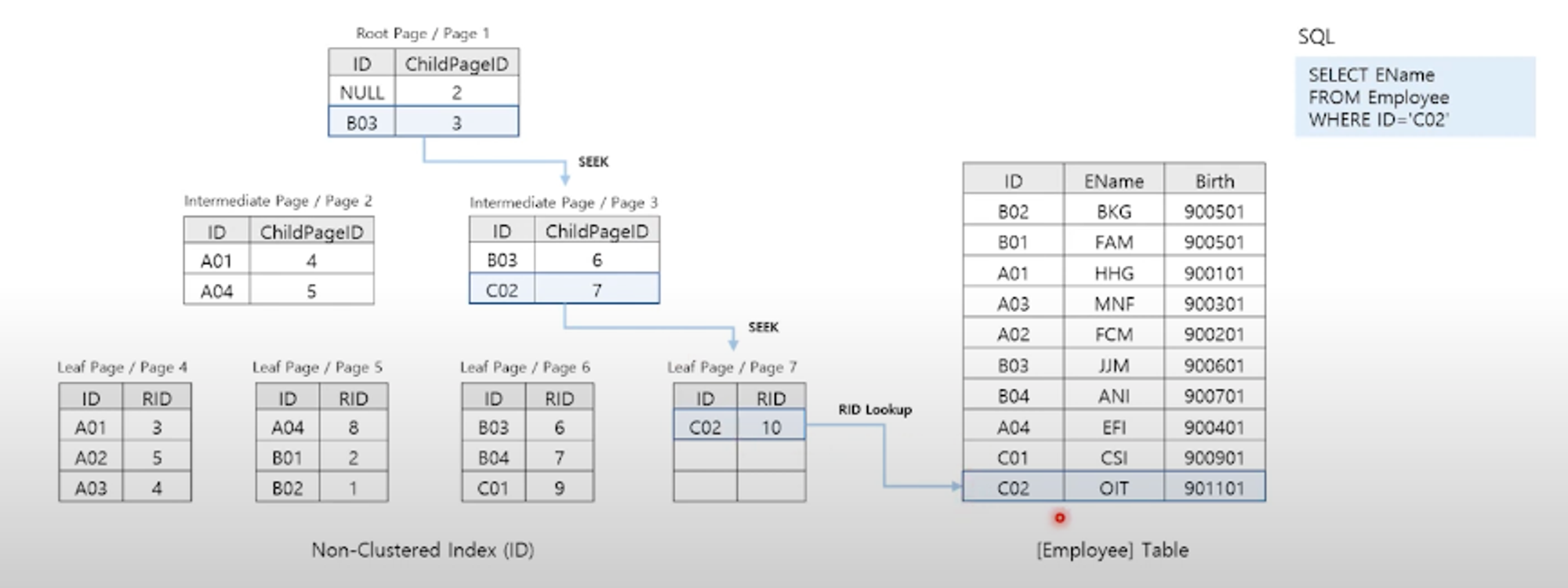 - Non-Clustered Index + Heap일 경우 RID Lookup 발생