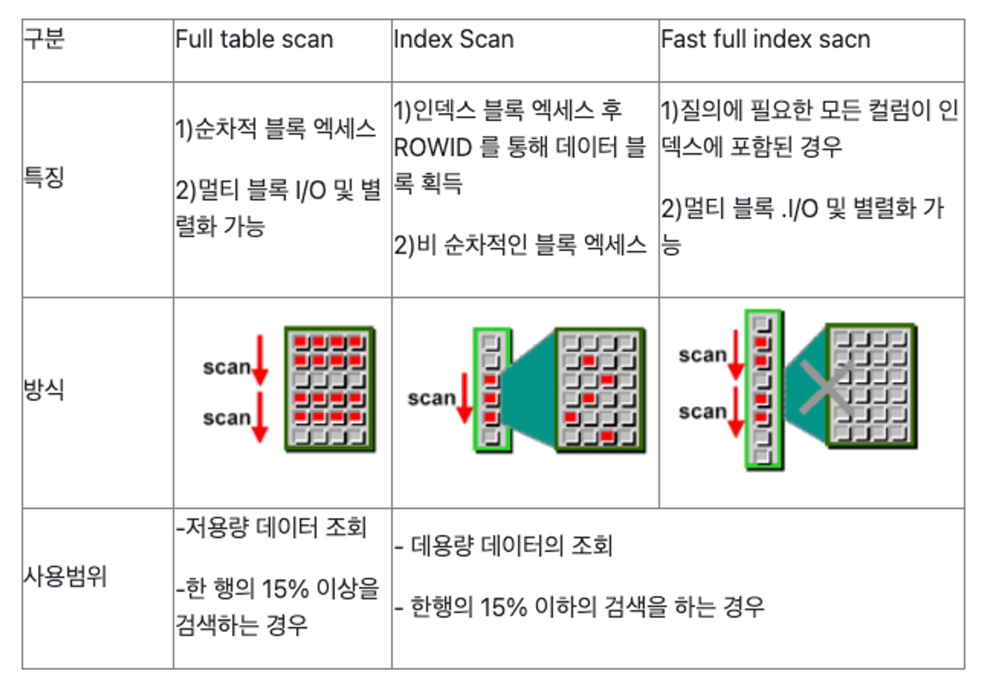 - SQL을 처리하면서 사용된 I/O 비용과 수행 시간도