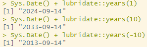 Sys.Date() + lubridate::years(10)