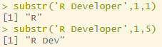 substr('R Developer',1,5)