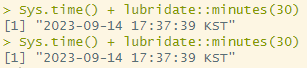 Sys.time() + lubridate::minutes(30)