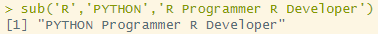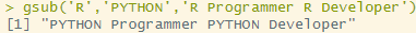 gsub('R','PYTHON','R Programmer R Developer')