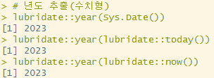 class(lubridate::year(Sys.Date())) # numeric