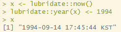 lubridate::year(x) <- 1994 # 년도 수정