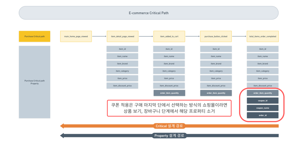 마지막 Step을 기준으로 앞쪽의 Event에서 수집 필요하지 않은 속성을 소거하는 방식