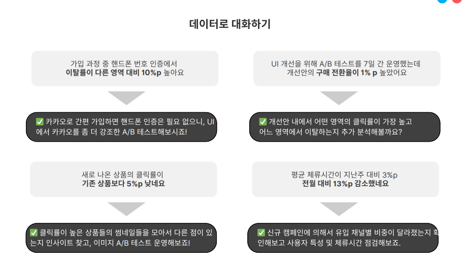 단순한 지표의변화 (e.g. 회원가입, 구매하기)보다는 지표의 분석(액션의속성, 유저의 속성)을 해야 유의미한 인사이트를 뽑아 낼 수 있다.