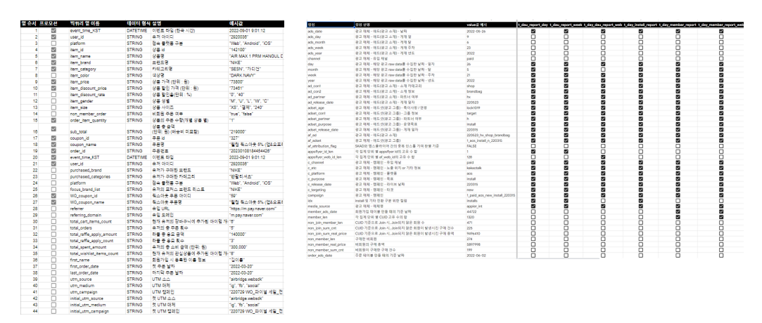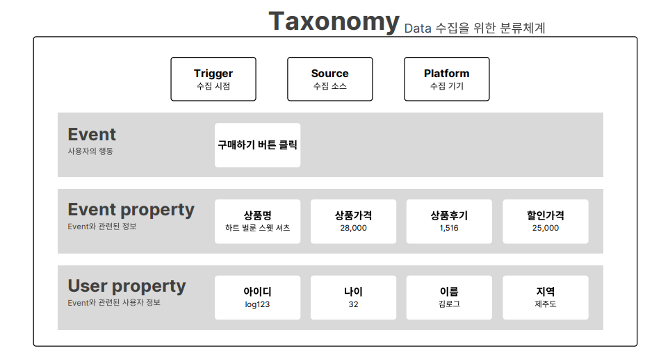 거기에 더불어 수집시점(trigger), 수집소스(source), 수집기기(platform) 등까지 수집되도록 설계하는데