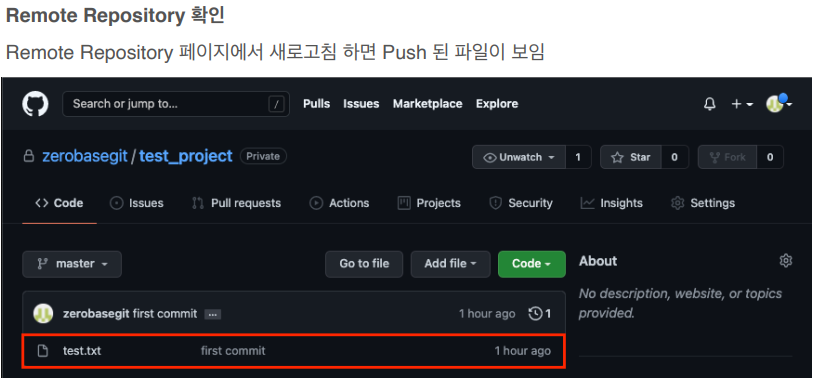 📌 local에서 commit한 test.txt 파일이 git에 push됨