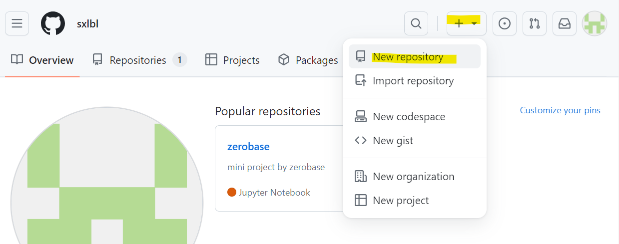 $ git remote add origin https://sxlbl:{토큰복사본}@github.com/sxlbl/zerobase