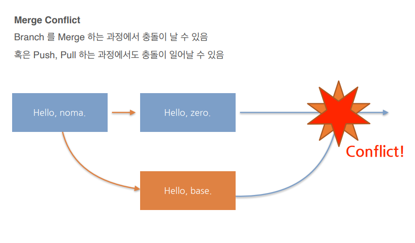 branch와 반대되는 개념으로 branch를 병합하는 기능- conflict