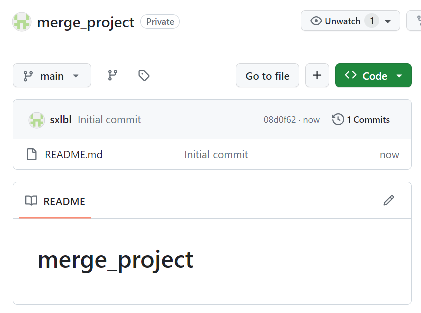 $ git clone https:sxlbl:{토큰}@//github.com/sxlbl/merge_project.git