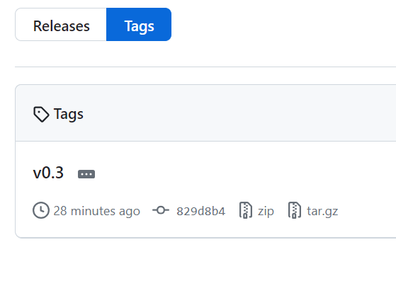 commit 829d8b42e3dff2d8d699a1623140ad029abe8502 (HEAD -> main, ๐ tag: v0.3, origin/main, origin/HEAD)