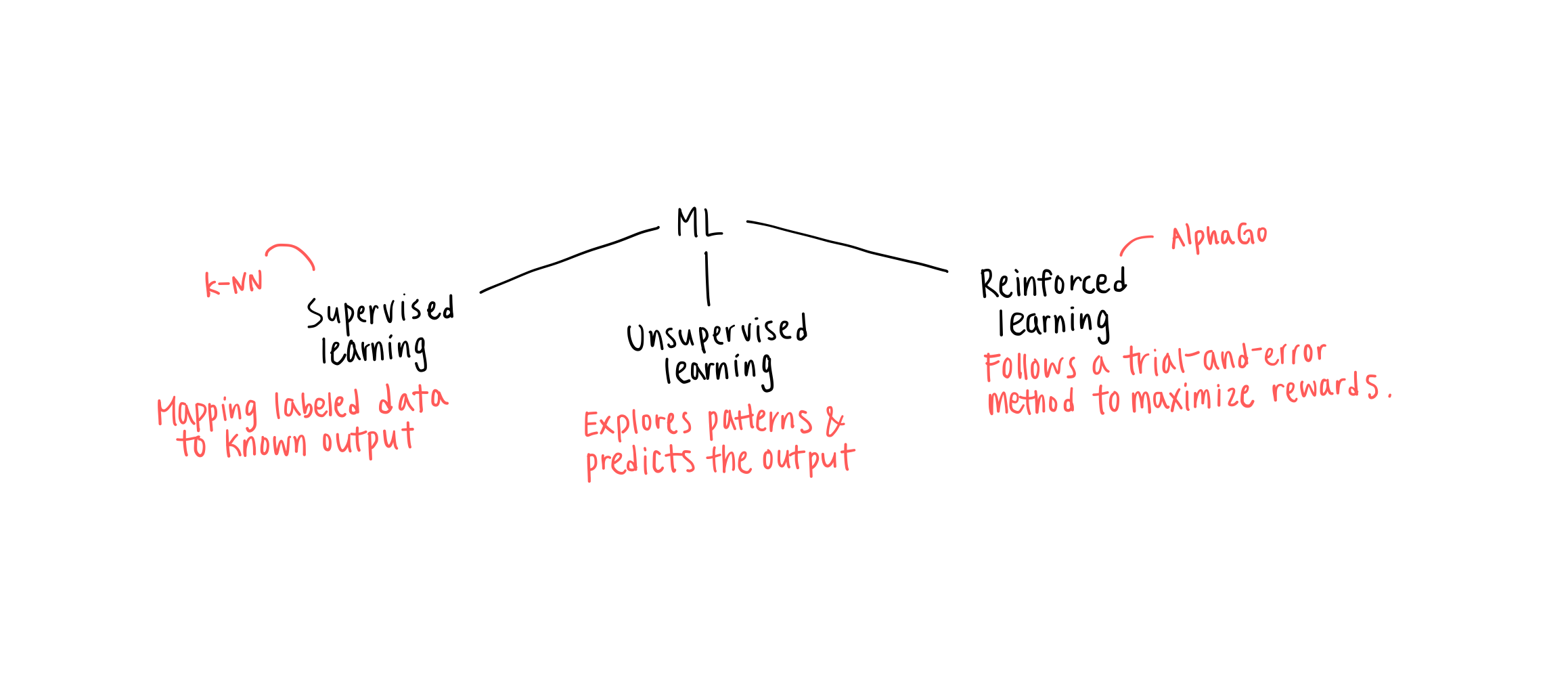 위와 같이 ML 은 학습 알고리즘에 따라 세 가지로 구분할 수 있다.