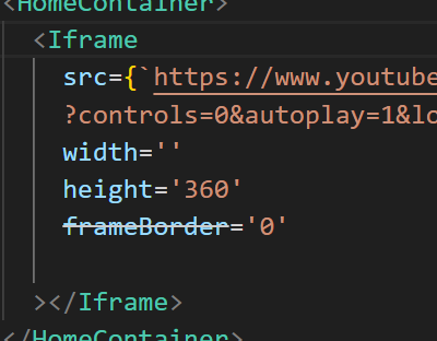 frameBorder 는 deprecated 즉 더이상 사용하지 않는 속성이다. css에서 border=0 으로 설정해주어야 한다.