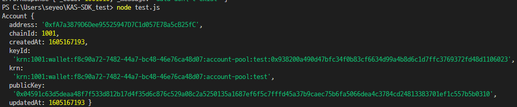 발생을 하고 있습니다만 KAS에서 발급받은 키 값은 이상이 없다고 생각됩니다. 왜냐하면 키 값의 이상이 있다고 생각하여 수십회 재 발급 받고 해 보았거든요..