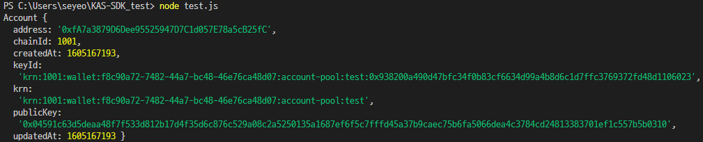 const result = await caver.kas.wallet.getAccount('0xfA7a3879D6Dee95525947D7C1d057E78a5cB25fC')