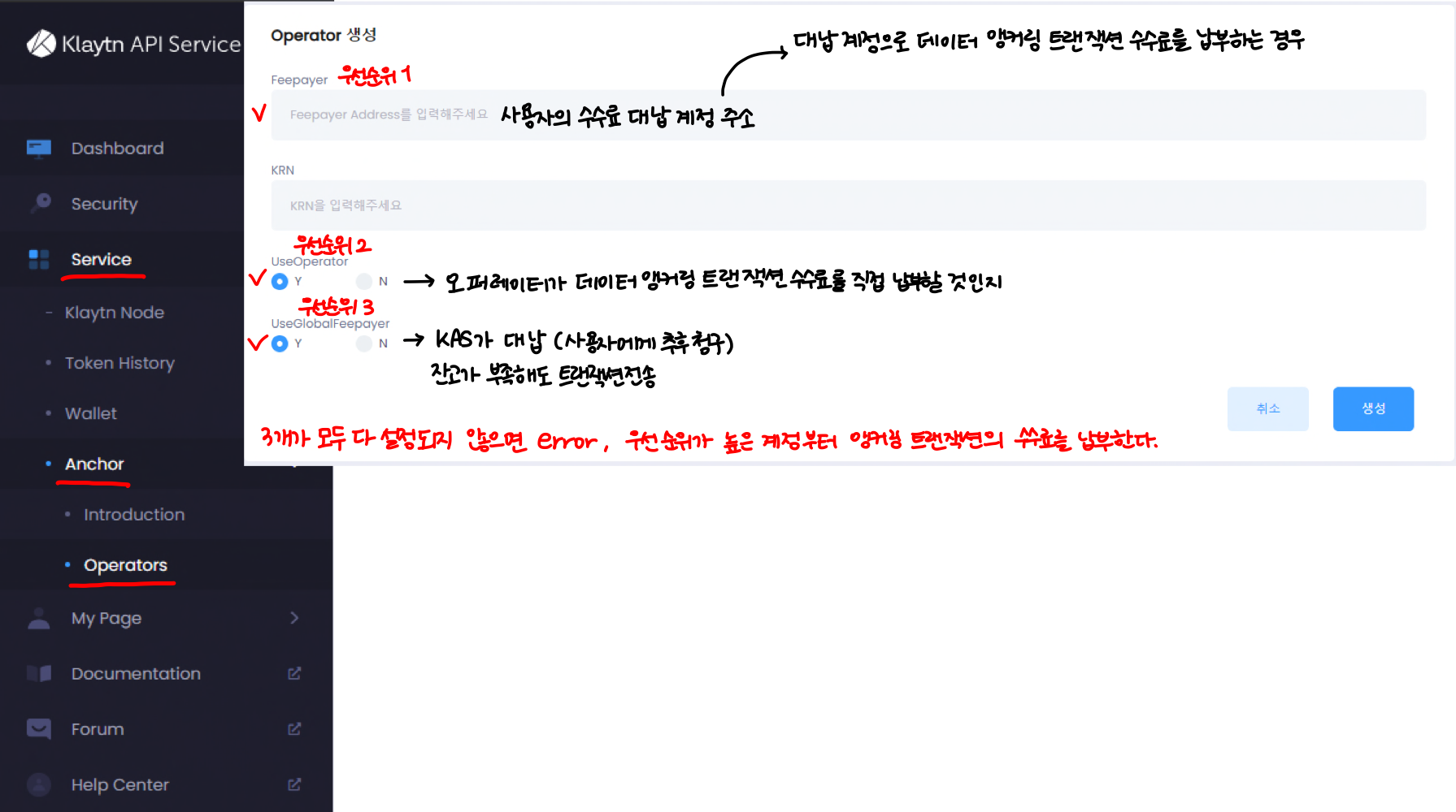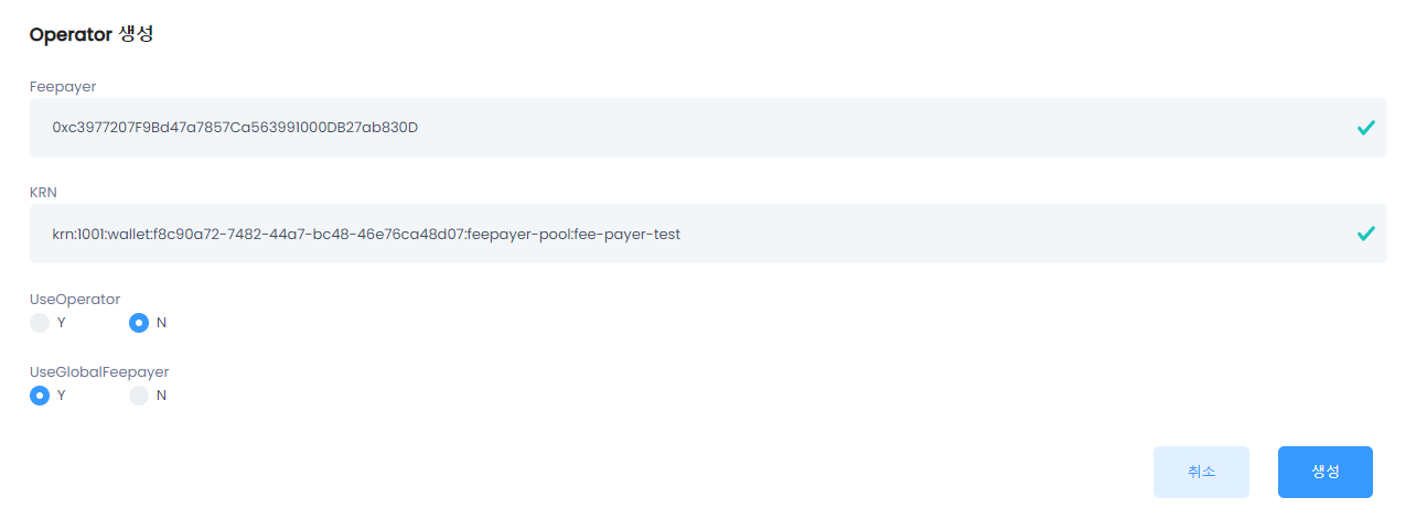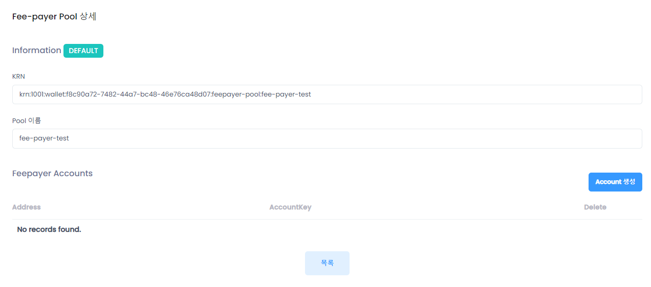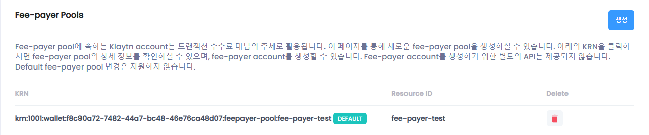 KAS 콘솔 -> Service -> Wallet -> Fee Payer Pools -> "생성"