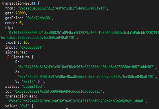 const result = await caver.kas.wallet.signTransaction(address, transactionId) // 트랜잭션 서명 API