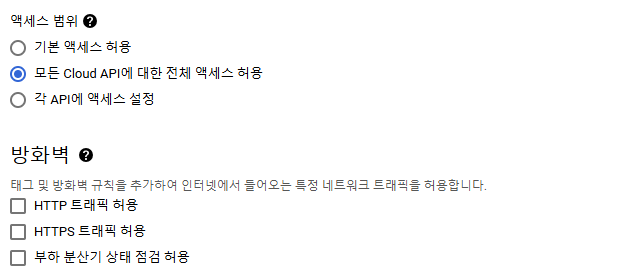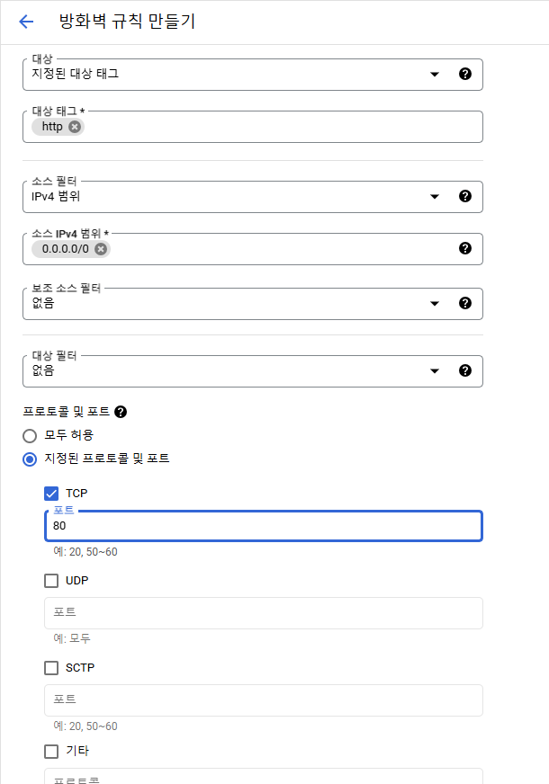 아까 HTTP 트래픽 허용 체크 안해서 그럼.