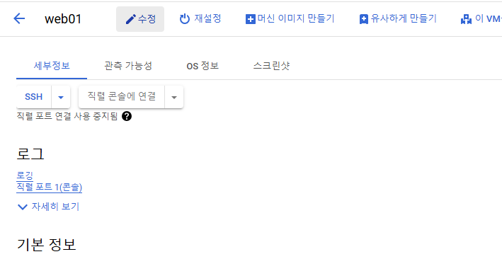 web01인스턴스로 돌아와서 '수정' 클릭.