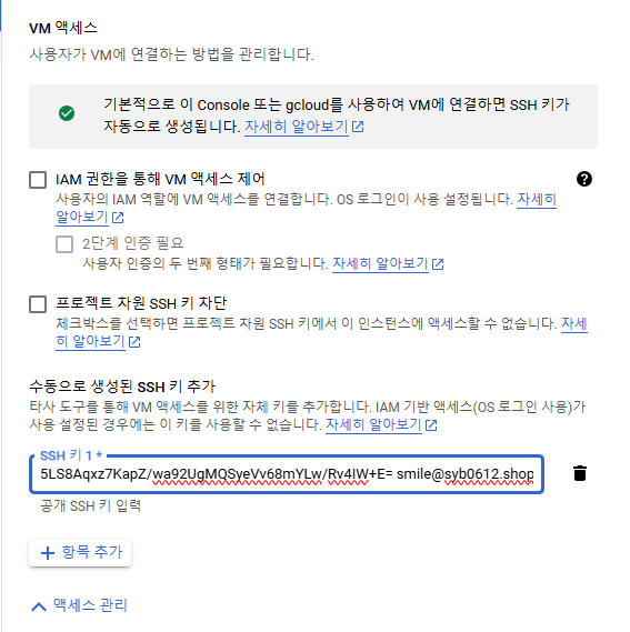 사용자 계정에 .ssh/id_rsa.pub파일 긁어서 붙이기.