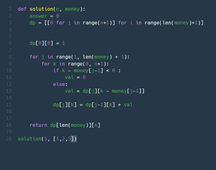 그렇다면 dp[j - 1]k-money[j-1]]이 되야 하는 것이 아닐까?