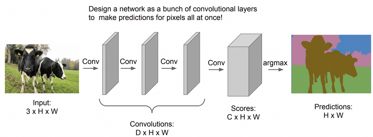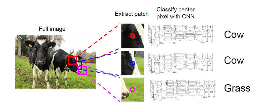 작은 ‘window’를 이미지 전체를 움직여 가면서(slide하면서) 해당 윈도우 내에 cow 또는 grass가 있는지 분류기로 판별한다.