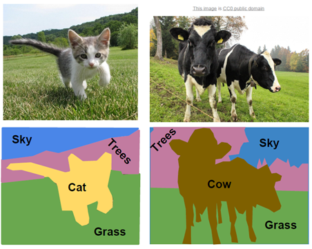 이미지의 각 픽셀이 어떤 클래스에 속하는지 예측하는 작업. Classification과 마찬가지로 미리 클래스의 수와 종류를 정해 놓아야 한다.