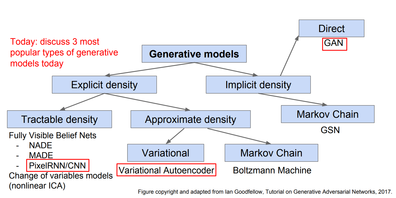 반대로, implicit한 방식이란?: 모델이 직접적으로 확률 밀도 함수를 학습하지 않고 실제 데이터와 비슷한 데이터 sample을 새로 생성하는 방식. (ex. GANs)